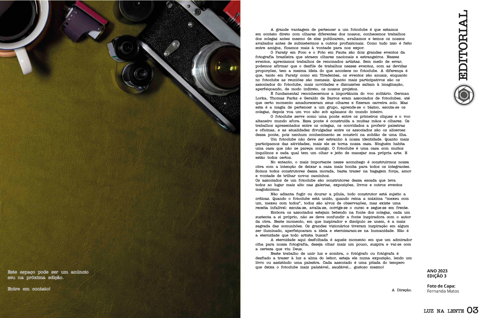 Revista do Fotoclube Luz na Lente publicada em 2023. Artigo de minha autoria "Fotografia de Longa Exposição"